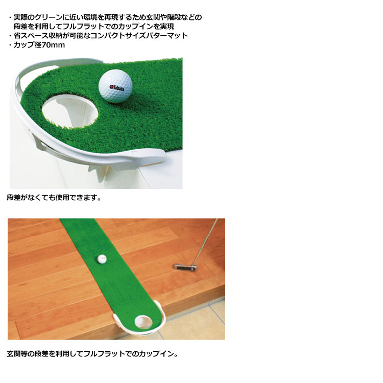 玄関・階段の段差を利用したフルフラットでリアルなカップインを可能にしたパッティング練習用マット