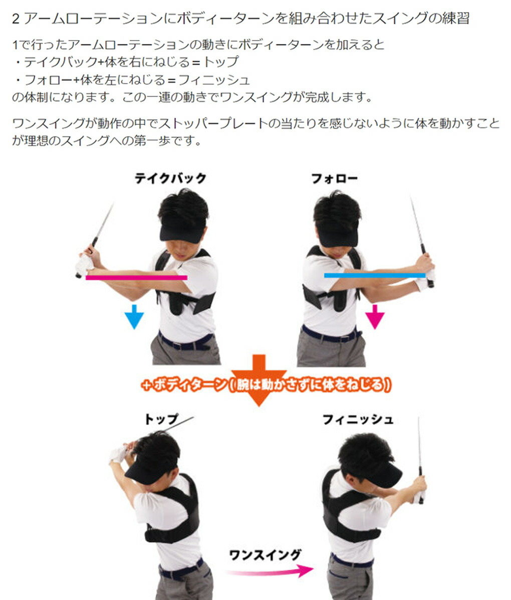 まず、アームローテーションを徹底的に習得してそのあとにボディーターンを組み込み理想的なスイングを練習できるアイテムです。