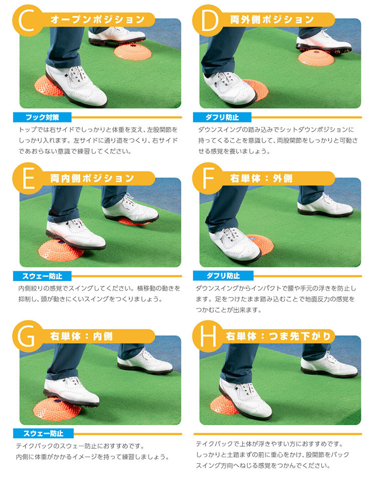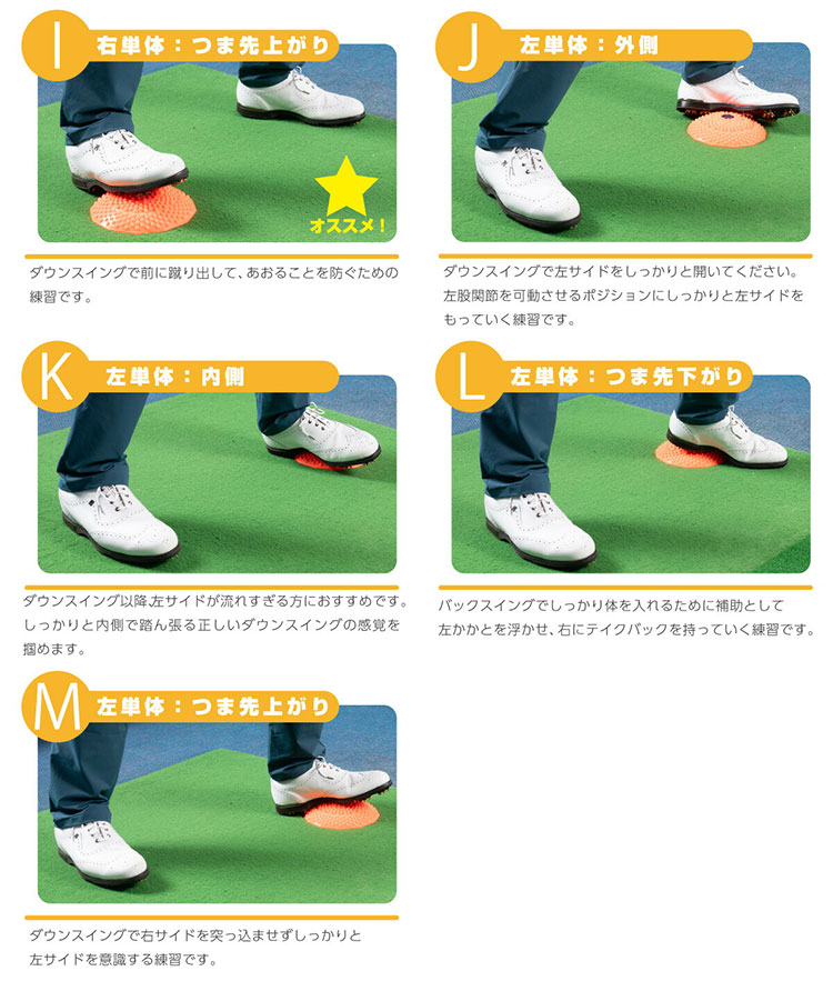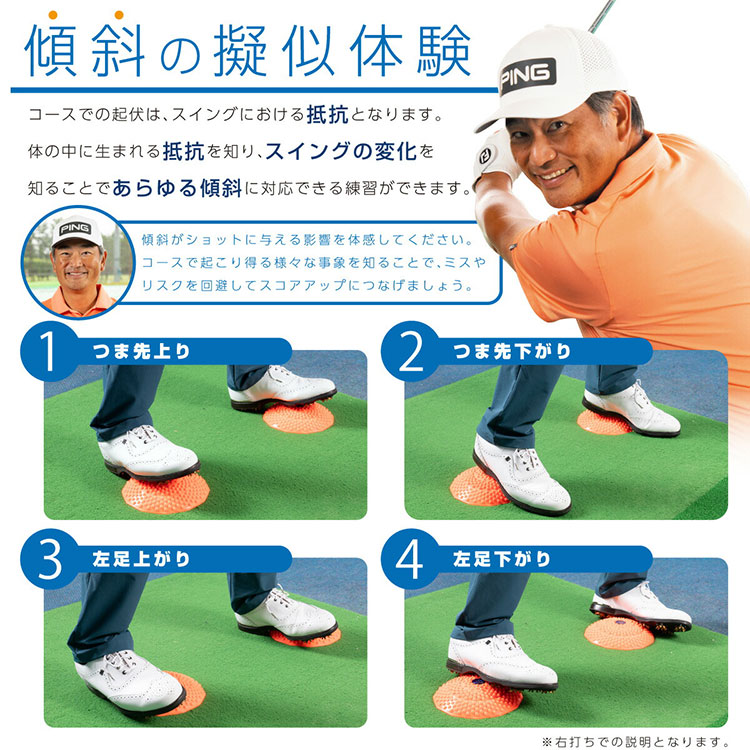 ●健康な人を対象にしたゴルフ練習器具です。体調の悪い方、脚・関節等にケガや障害のある方はご使用になれません。