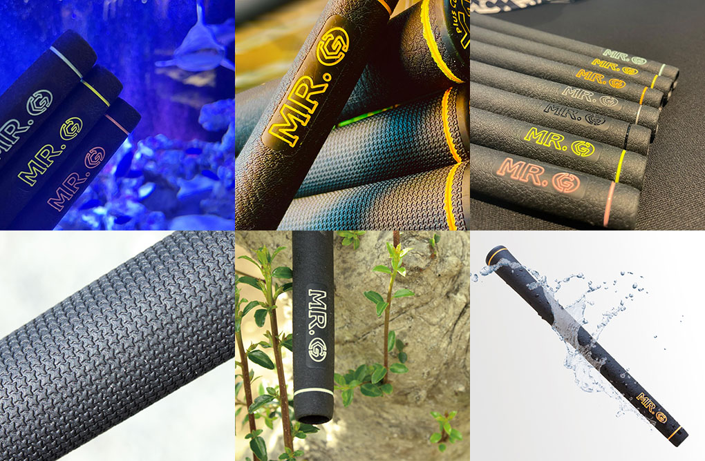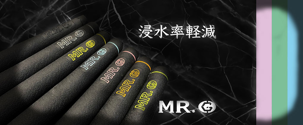MR.Gグリップは、ゴルフクラブと自身の身体を唯一繋ぐ物であり最も大事な物である。特に気候が左右するゴルフではグリップ力や、他の要素は必須であり、グリップにあたる中指、薬指側 に凸の形状を施し、また、あまり力を入れたくない親指側の形状も変化させている。さらにグリップの素材自体に撥水素材を混ぜ、余分な水分除去を担っていることで、雨の日のゴルフや、手汗など余分な水分をグリップ内に吸収せず、簡単な拭き取りで除去できる。