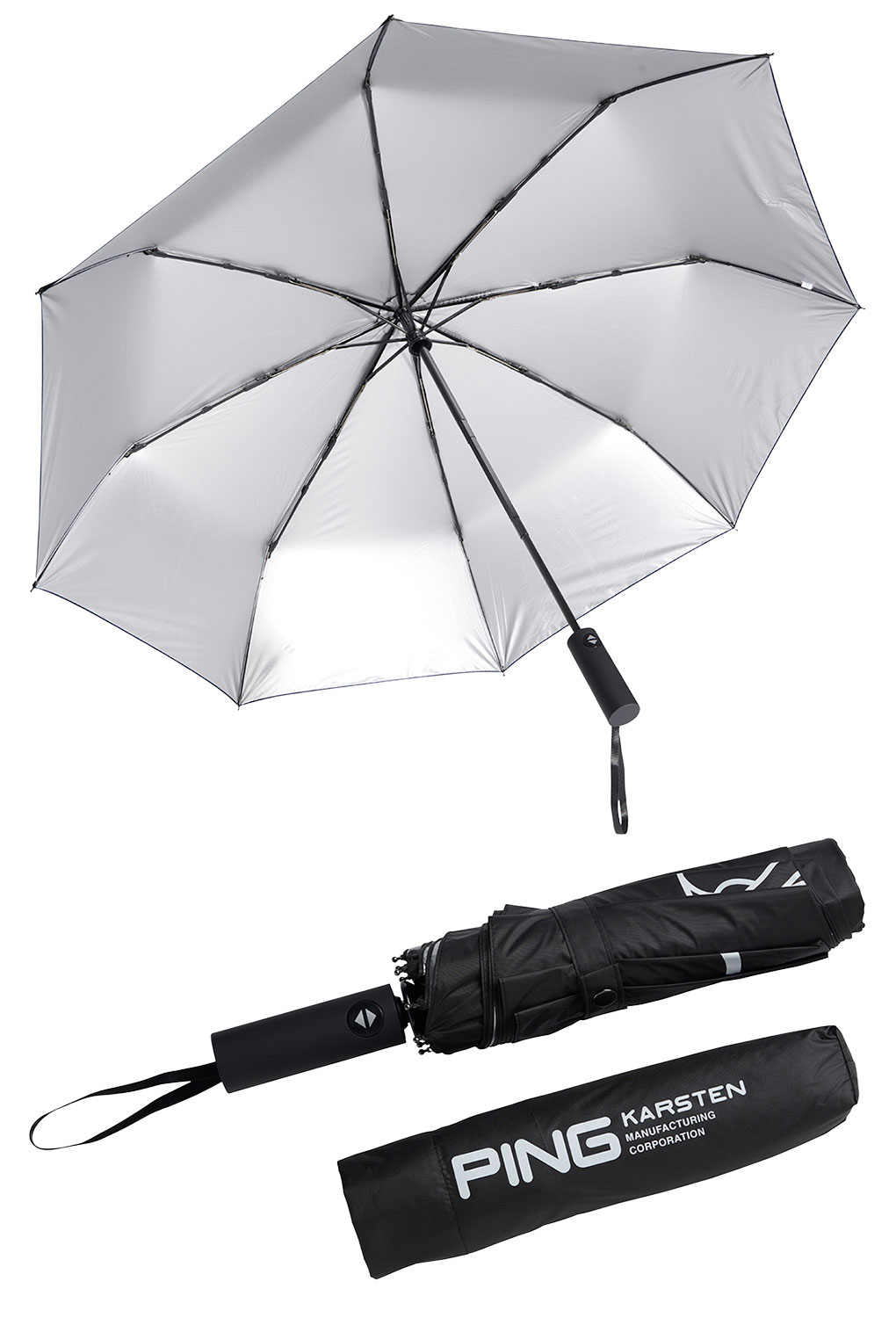 ・PINGロゴとMR.PINGのプリントが目を引く晴雨兼用折りたたみ傘