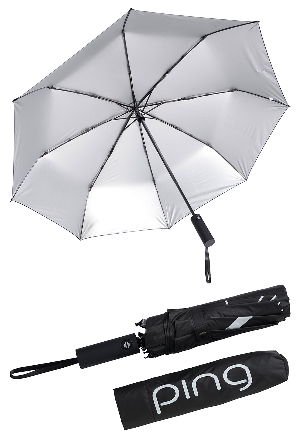 ・pingロゴとMR.PINGのプリントが目を引く晴雨兼用折りたたみ傘