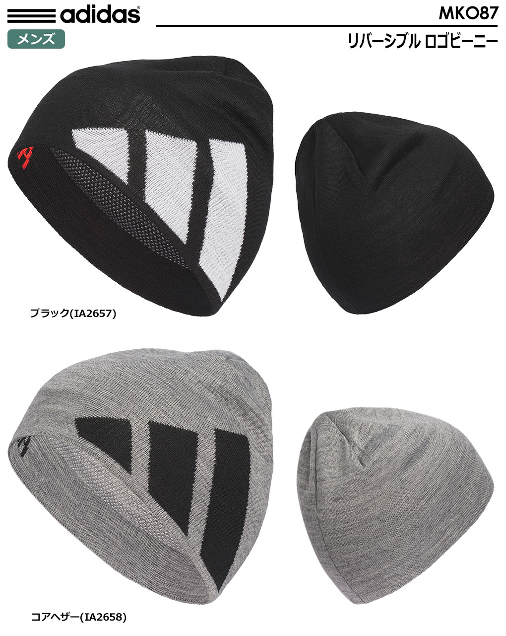 アディダス リバーシブル ロゴビーニー MKO87 メンズ adidas 2023秋冬モデル 日本正規品