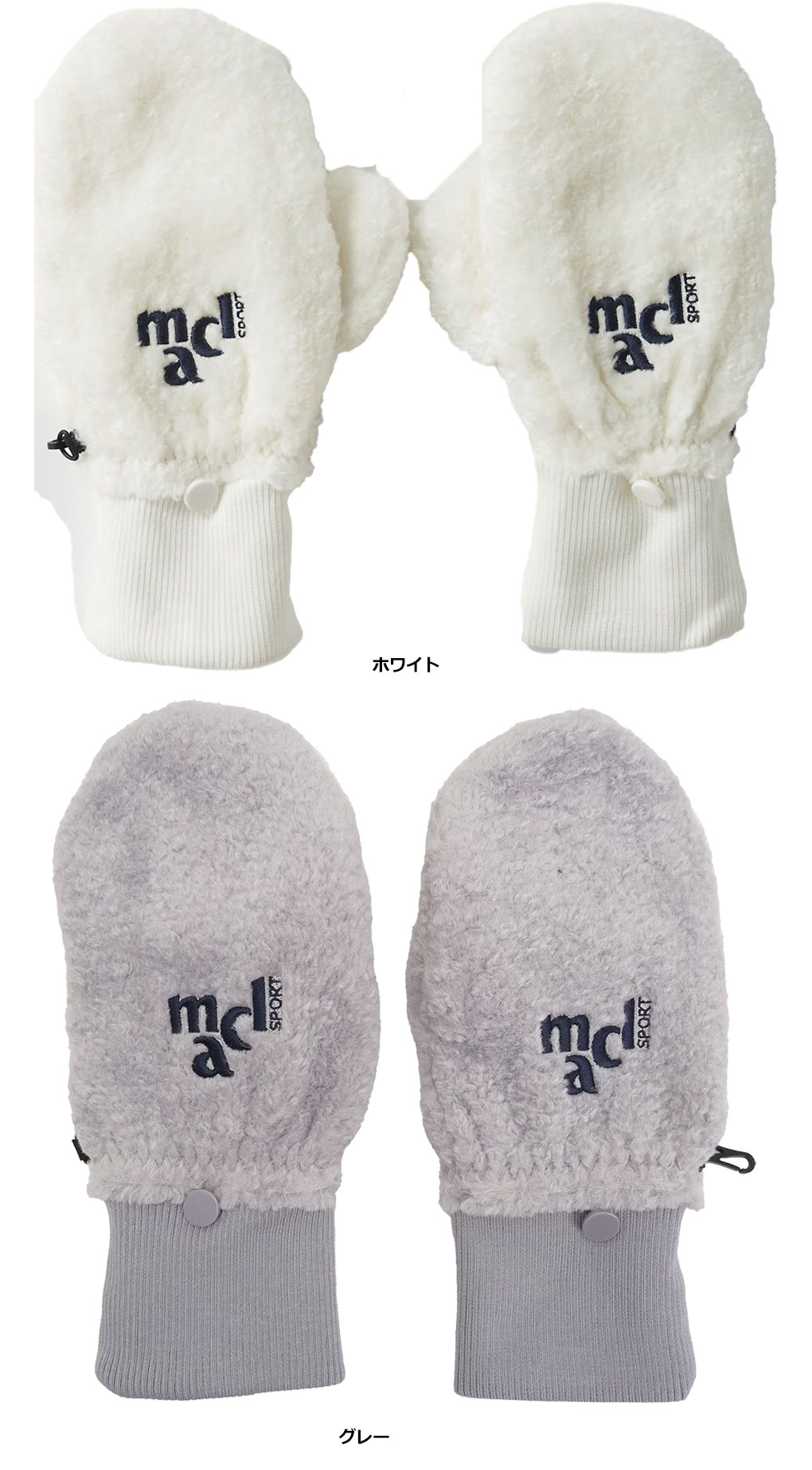 左右のミトンをつなげるフック付き。
