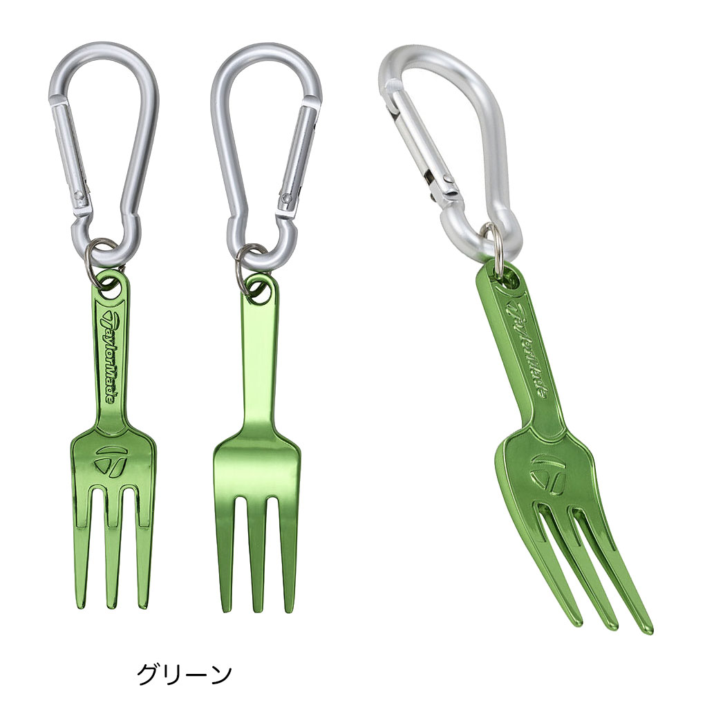 遊びごころのあるグリーンフォーク。機能的にも三本刃がしっかりとグリーンに刺さり、グリーン修復がしやすい。カラビナ付きで様々な場所に装着可能。持つだけでラウンドが楽しくなるグリーンフォーク。