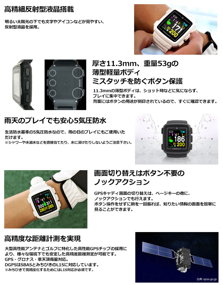 1メートル精度を実現する「みちびきL1S」対応 位置精度を極めたゴルフウォッチ
