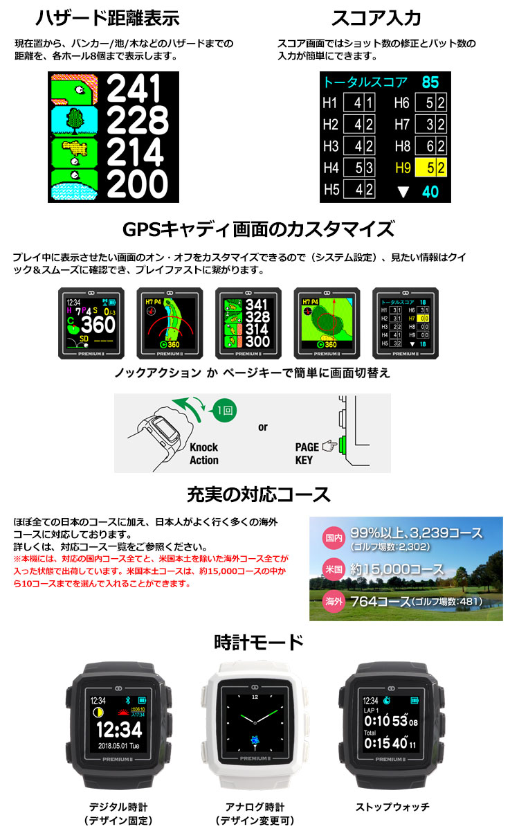 グリーンオン THE GOLF WATCH PREMIUM 時計型GPSナビ G014