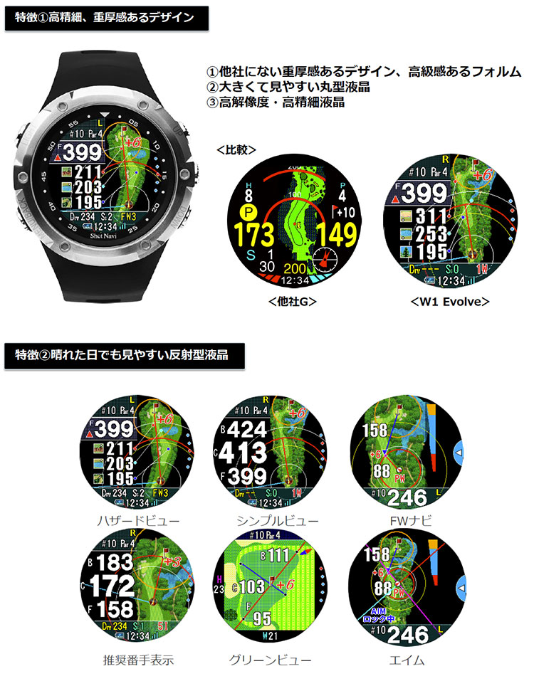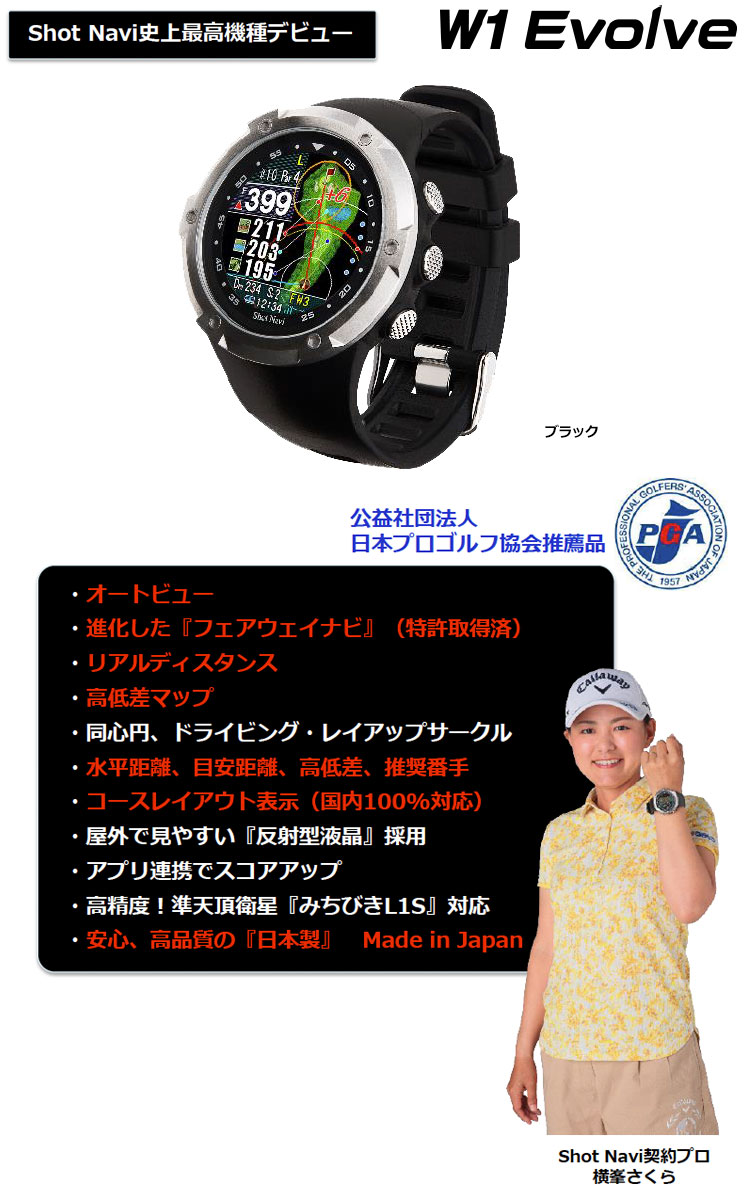 【毎日発送】Shot Navi ショットナビ W1 Evolve ブラック ゴルフナビ 時計型 日本正規品