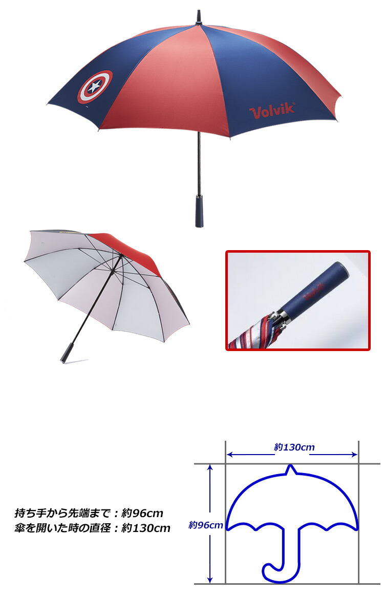 ボルビック Volvik MARVEL× キャプテン・アメリカ アンブレラ CAPTAIN AMERICA UMBRELLA 傘 VAIBUM04NY 日本未発売 雨対策 傘 USA直輸入品 並行輸入品 USモデル ゴルフ ゴルフ用品