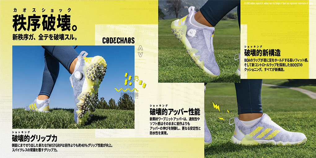 コードカオスの性能がパワフルに進化。破壊的な性能を持つ次世代スパイクレスゴルフシューズ。