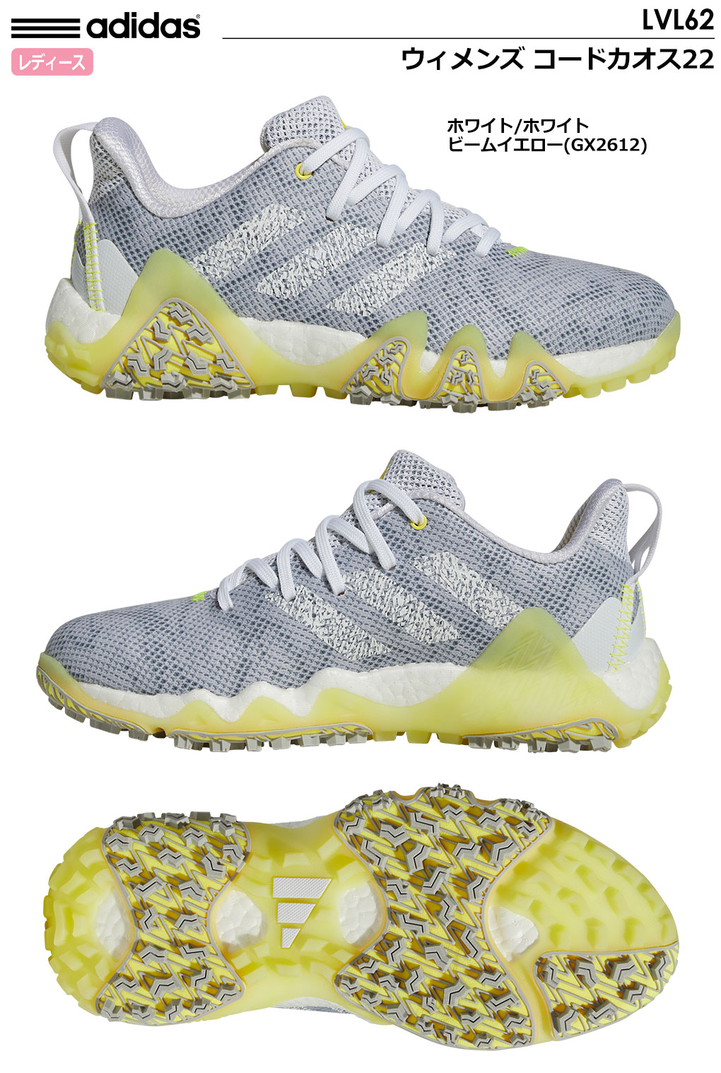 【毎日発送】アディダス ゴルフシューズ ウィメンズ コードカオス22 LVL62 レディース スパイクレスシューズ GX2612 ホワイト/ホワイト/ビームイエロー adidas 2022年モデル 日本正規品