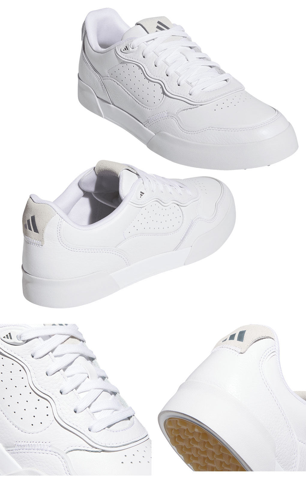 コートスタイルゴルフシューズのレトロクロスが更に進化。引き続き、硬い路面ではクッション性を生み、芝生の上では地面に噛み付くラバーCROSSGRIPを採用。アッパーは特徴的なブロッキングデザインになりつつ、アッパー素材が天然皮革にアップグレード。よりソフトで上質な履き心地に進化。また、カラーによって通常の天然皮革とスウェードレザーの2種類があり、ユニークなデザインを演出。いずれのアッパー素材も防水仕様。