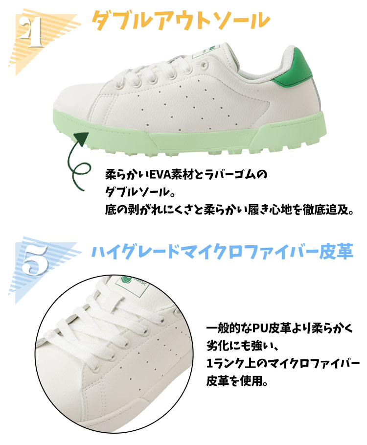ゴルフっぽさを抑えたスニーカー風のデザイン。