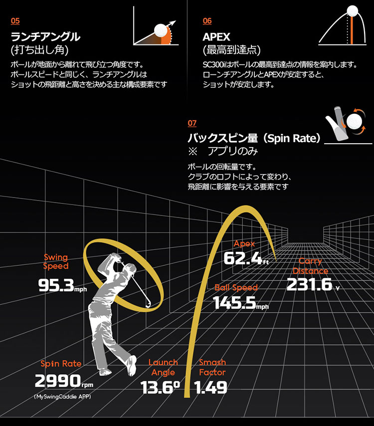 飛距離を伸ばすために重要な6つの要素を瞬時に測定!