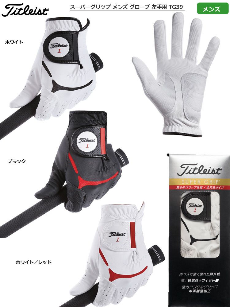 他の画像を見る ゴルフ グローブ 手袋 左手用 【毎日発送】タイトリスト スーパーグリップ メンズ グローブ 左手用 TG39 ホワイト ホワイト/レッド ブラック グローブ 日本正規品 定価 オープン価格 のところ 当店価格 ¥ 1,320 税込 カートに入れる お気に入りに登録する 在庫切れ