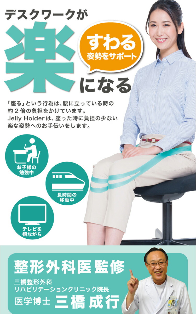 Jelly Holderは、座った時に負担の少ない楽な姿勢へのお手伝いをします。