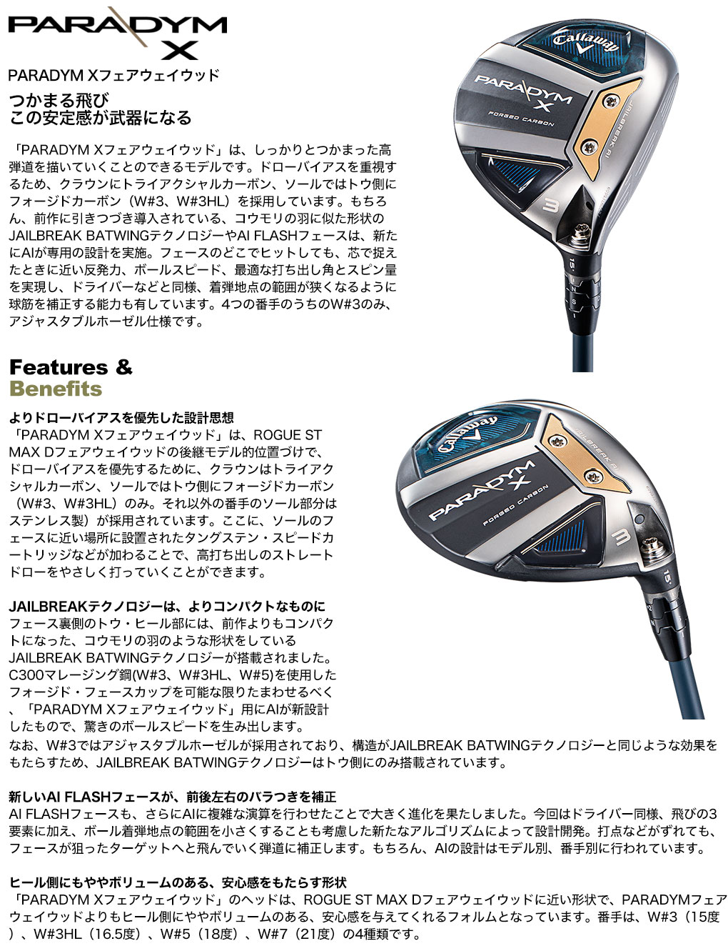 2023年2月発売 フェアウェイウッド ゴルフクラブ パラダイム Callaway 右利き 2023年モデル 日本モデル