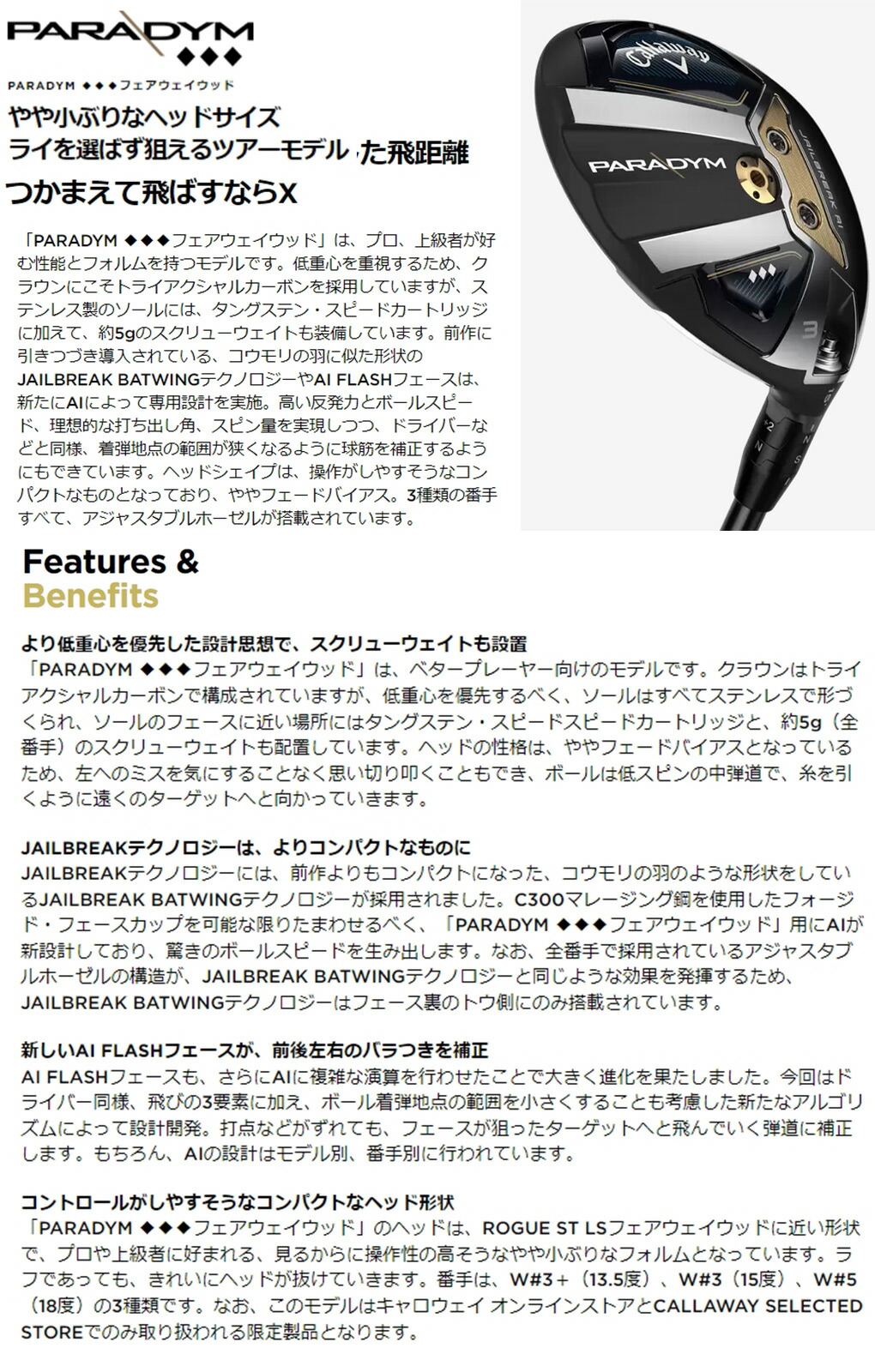 2023年2月発売 フェアウェイウッド ゴルフクラブ パラダイム Callaway 右利き 2023年モデル USモデル