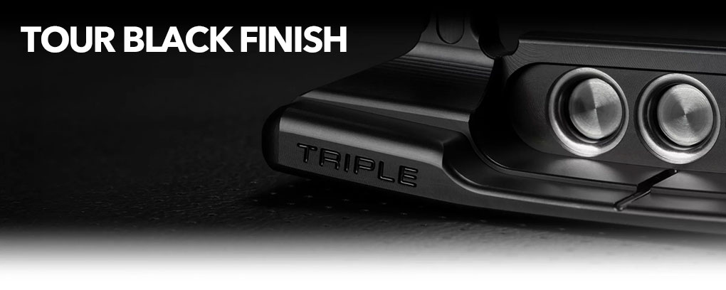 ダークパターを好むプレーヤー向けに開発され、太陽光のまぶしさを軽減するために、この PVD 処理は、トップラインとバックを手動で霧吹きし、フェースとソールを手作業でバフ研磨した後、303 ステンレススチール パターヘッドに適用されます。クロームシャフトには同じツアーブラック仕上げが施され、ブラックのピストリーニプラスグリップが「トリプルブラックデザイン」を完成させます。