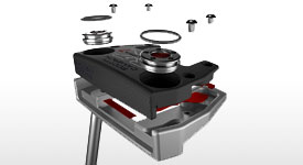 特長的なバーバックデザインが、重量をよりフェース後方に置くことで慣性モーメントを高め、さらに構えやすさも向上します。