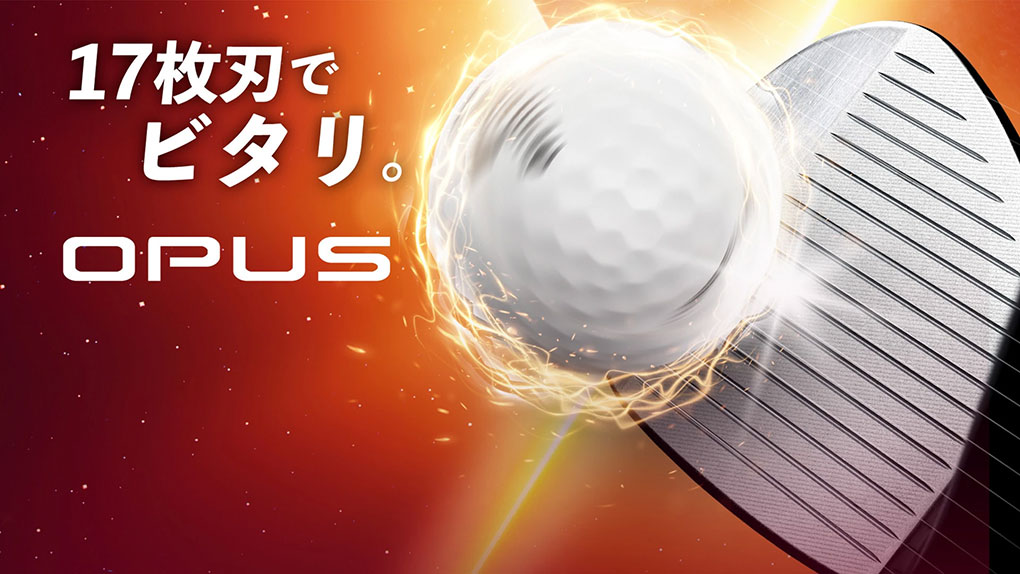 キャロウェイの新製品、「OPUSウェッジ」の名前は、カリフォルニアの最高級ワインをつくるワイナリー名を参考にしてつけられました。それほどに、極上なモデルを目指したということになります。リーディングエッジにやや丸みがあり、ティアドロップ型がより強調されているシェイプは、ツアープレーヤーとの入念なコミュニケーションをもとに、何度も改良を重ねて完成。フェース面では、鋭い37Vグルーブの角をキープしながら溝の幅を小さくして間隔を狭めることで、従来よりも本数が2本増加し、とくにラフやウェットなライでのスピン性能とコントロール性が大幅にアップしました。好評だったJAWS FORGEDウェッジのブラスト処理を引き継ぎ、キャロウェイ独自のマイクロフィーチャーも変わらず採用。グラインドには、従来のS、W、Cに加えてTグラインドが登場し、ロフトは48度から60度まで2度刻みの7種類がラインアップされています。