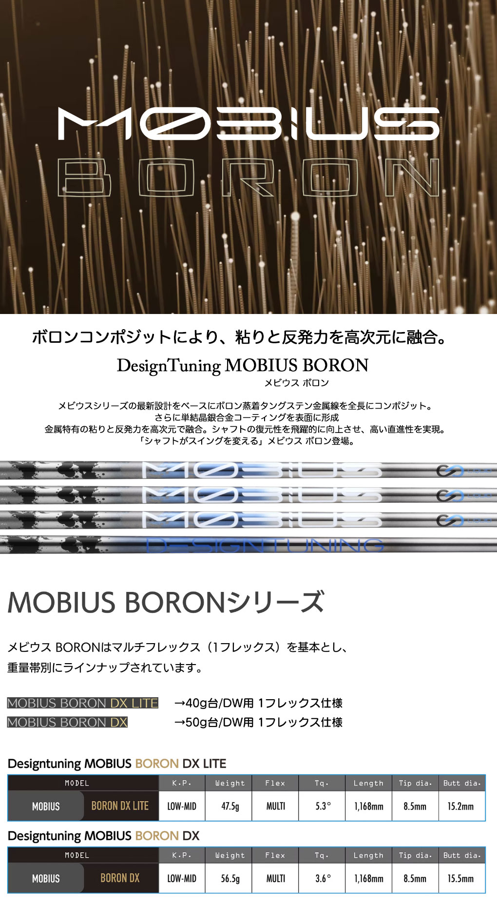 メビウスシリーズの最新設計をベースにボロン蒸着タングステン金属線を全長にコンポジット。