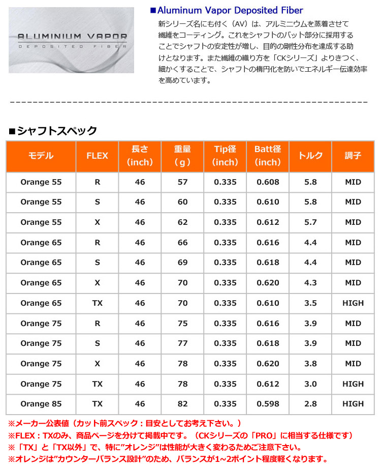 「TENSEI AV RAW ORANGE」は「CK」シリーズと同様にカウンターバランス(手元側重心)設計を採用。