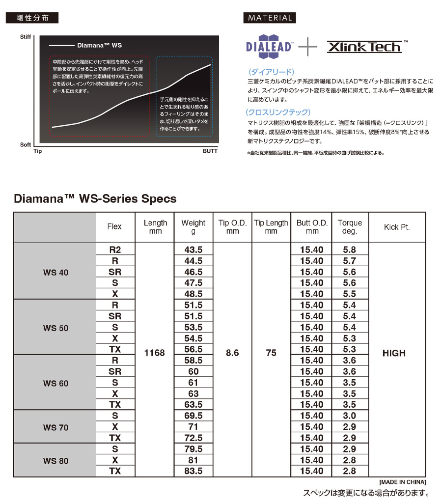 ■三菱ケミカル Mitsubishi Chemical Diamana ディアマナ WS 日本正規品(2023年2月発売)