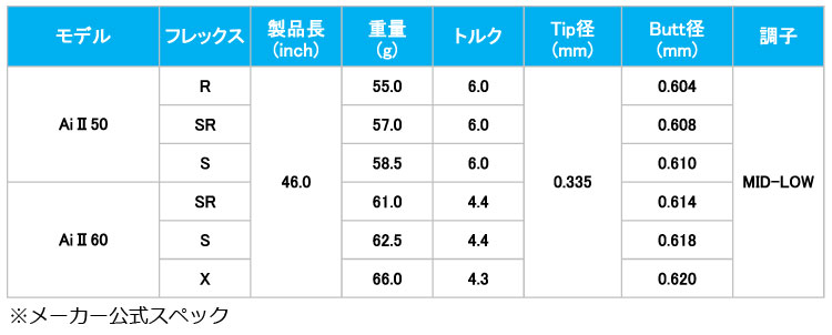 →ドライバー用で指定が無い場合は「基本スペック」記載の長さとなります。