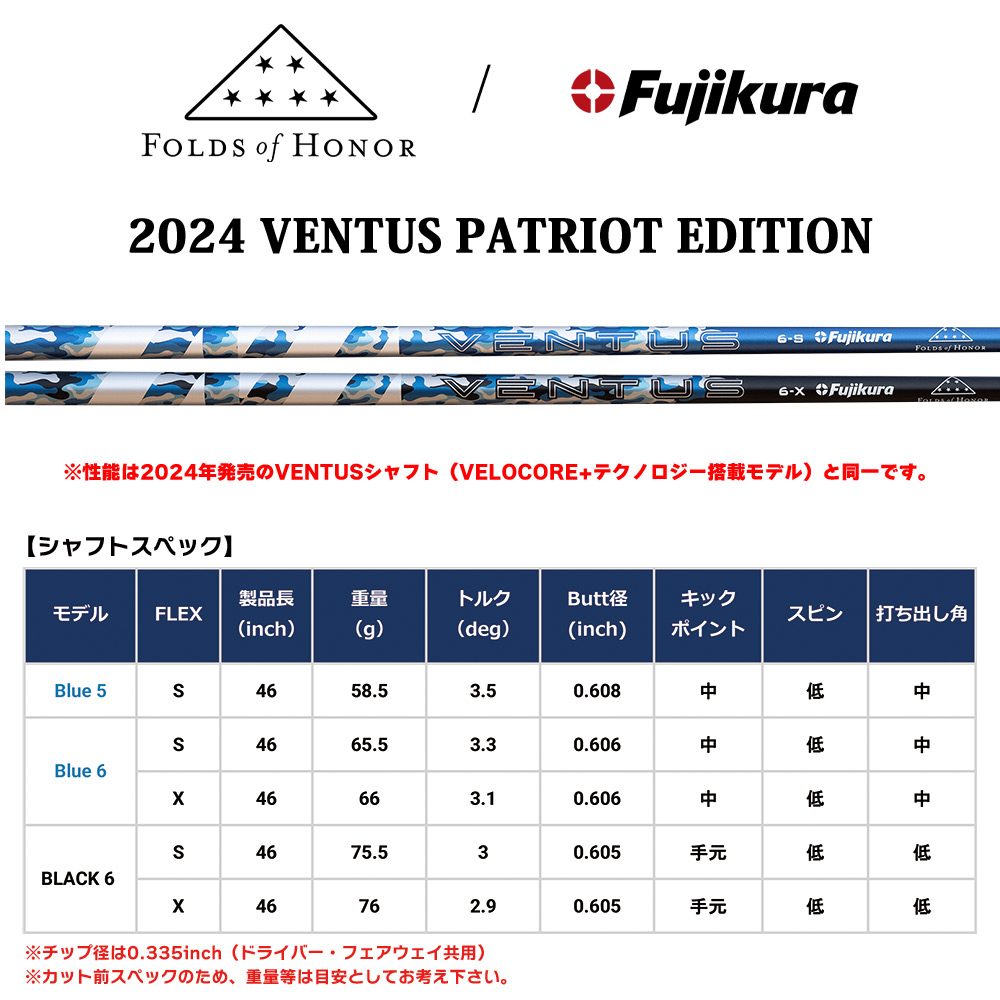 アメリカ軍の任務中に負傷、または亡くなった軍人家族を支援することを目的とした非営利団体「Folds of Honor(フォールズ・オブ・オナー)」の活動を支援するFujikura社は、退役軍人の日である11月11日に限定モデルシャフト「2024 VENTUS PATRIOT EDITION」を発売。