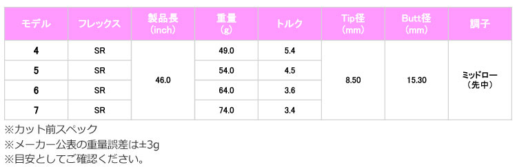 ※[4/SR][5/SR][6/SR][7/SR]以外のスペックはラインアップがありません。