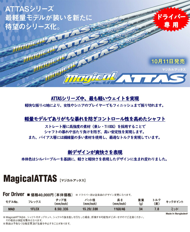 【超軽量シャフト】UST mamiya Magical ATTAS(UST マミヤ マジカルアッタス)