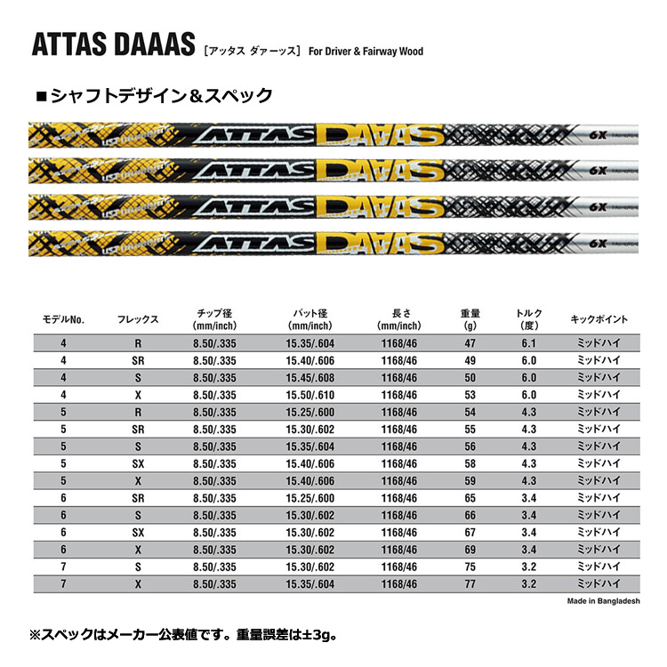 ヤマハ YAMAHA スリーブ付きシャフト ATTAS12 DAAAS アッタスダァーッス (RMX120/RMX220/RMX118/RMX218/RMX116/RMX216)