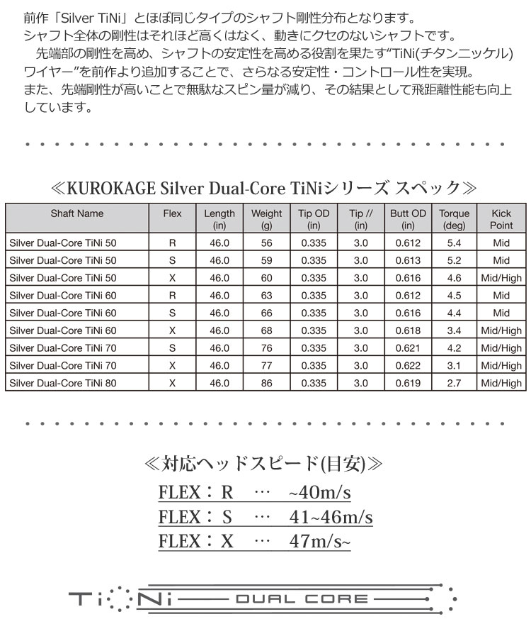KUROKAGE Silver Dual-Core TiNi(三菱ケミカル クロカゲ シルバー デュアルコア チタンニッケル)