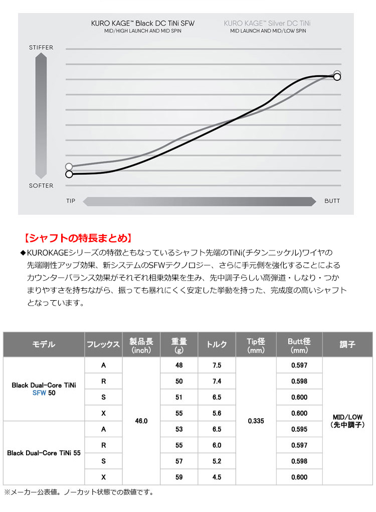 三菱 KUROKAGE BLACK DC TiNi(クロカゲ ブラック デュアルコア チタンニッケル)