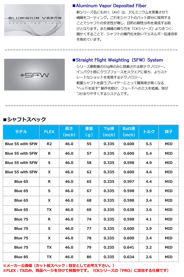 ※「AV BLUE」と「AV RAW BLUE」において、FLEXに"TX"が加わった以外に基本的なスペックは変わっていません。