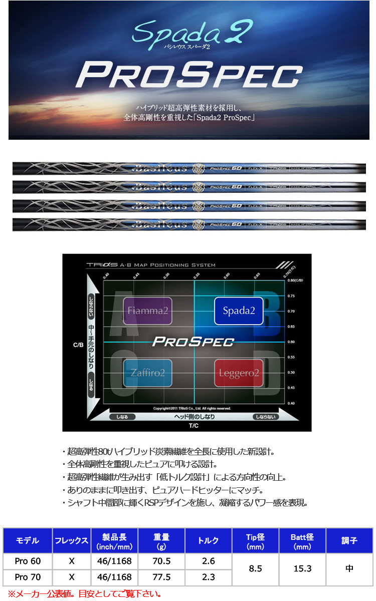 ヤマハ YAMAHA スリーブ付きシャフト Basileus Spada2 ProSpec (バシレウス スパーダ 2 プロスペック ) バシレウス スパーダ2 プロスペック ゴルフ シャフト