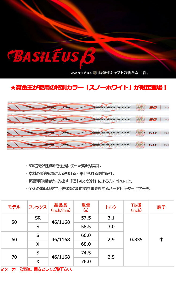 ヤマハ YAMAHA スリーブ付きシャフト Basileus β 限定 WHITE ver. (RMX118/RMX218/RMX116/RMX216 ) バシレウス ベータ ホワイト ゴルフ シャフト