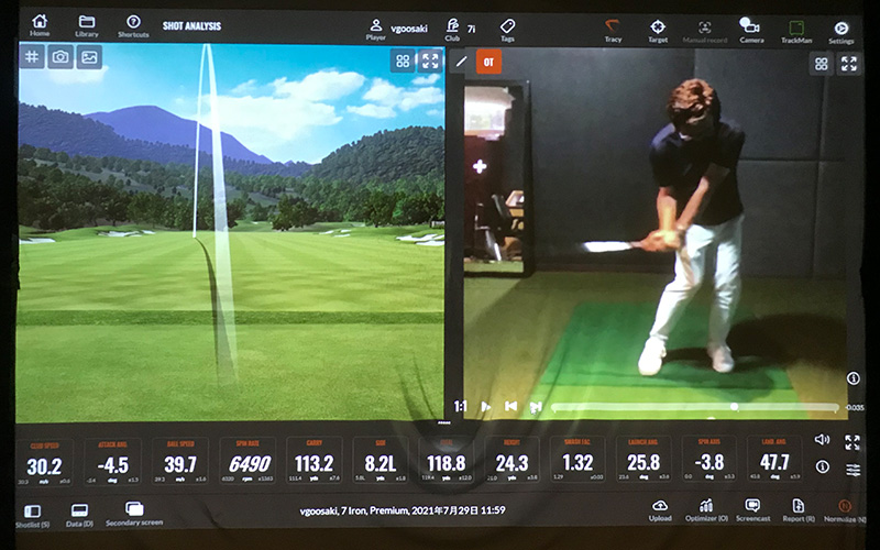 トラックマンルームについて 感覚でしかわかっていなかった自分のスイングを 実際の数値で明確に把握しませんか? 最新のトラックマン4が常設された専用ルームがオープンしました! トラックマンの数値も大スクリーンを使って確認できます。 ご利用料金 会員様もビジター様も、誰でもご利用可能です! 時間 料金 ルーム利用料金(50分)(1回2名様まで) 5,500円 3名様以上でご利用の場合、1人あたり+1,100円かかります。 トラックマンとは 業界最高水準の性能を誇り、PGAツアーのトッププロも使用するゴルフ弾道測定器。 感覚でしかわかっていなかったあなたのスイングの実際を数値で正確に把握できます。 公式ホームページ トラックマンでとれる数字 トラックマンは6フィートのピッチングから400ヤードのドライバーまでの着地点を正確に計測することで、ショットの全容を把握できます。 たったの1秒で26項目のクラブ及びボールの測定データと3Dでのショットの軌道を表示します。 Smash Factor スマッシュファクター Spin Rate スピン量 LAUNCH ANGLE 打ち出しアングル CARRY 距離 BALL SPEED ボール速度 CLUB SPEED クラブスピード DYNAMIC LOFT 動的ロフト ATTACK ANGLE クラブの入るアングル CLUB PATH クラブパス FACE ANGLE フェイスアングル トラックマンでは一般的なシュミレータで分かる数値以外に、クラブヘッドの動きやスイングプレーン等の内容が数値・画像で確認する事が出来ます。 今までは自身の感覚やスイング画像でしか確認出来なかった内容が明確な数値で確認出来る為、 希望の弾道や飛距離目標に対し、的確な回答と目指すべき修正目標の設定が可能になります。 お勧め① IMPACT 主にショット時のクラブヘッド状態が分かります。 アタックアングルがアッパーなのかダウンなのか、どの程度のものなのか等が一目で分かります。 【練習に活用し易いポイント】 ・アタックアングル(アッパーor ダウン) ・スピンロフト/ダイナミックロフト ・スピンロフト/ダイナミックロフト※ドライバーのヘッドロフト決定に大変便利 ・フェースアングル(オープン or クローズ)※ヘッドタイプ決定に便利 お勧め② SWING PLANE スイングアーク下部のシャフト軌道が分かります。 スイング軌道角度が安定しない(±3°以上)場合は、シャフト重量(クラブ総重量)の見直しも良いかも知れません。 【練習に活用し易いポイント】 ・スイングダイレクション(インサイド or アウトサイド) ・ローポイント(最下点とインパクト位置関係) ・スイングプレーン※スイングのブレ幅 お勧め③ IMPACT LOCATION フェース面打点位置が分かります。 飛距離アップ/曲がり改善に最も重要なポイントです。 そもそも芯から外れている場合、スイング修正を見直す可能性が出てきます 【練習に活用し易いポイント】 ・インパクトオフセット/インパクトハイト※ヒール/トゥーヒットによる曲がりの要素確認※2のプレート合わせて、ボールとの距離/位置修正に ・ダイナミックライ※アイアンのライ角修正の参考になります。 お勧め④ OPTIMIZER 初速、スピン量、打ち出し角度が重要... とは言われますが、どの数値を目指せば良いのか? ベストの状態から外れているポイントと、マッチした場合との差を一目で確認出来ます。 【練習に活用し易いポイント】 OPTIMIZERR 単体での使用でも指標に最適ですが、①〜③の機能と組み合わせて使うとより効果的です。 トラックマンルームのご予約 / お問合わせ WEB ご予約 お問合わせ 電話 local_phone 03-6417-9105